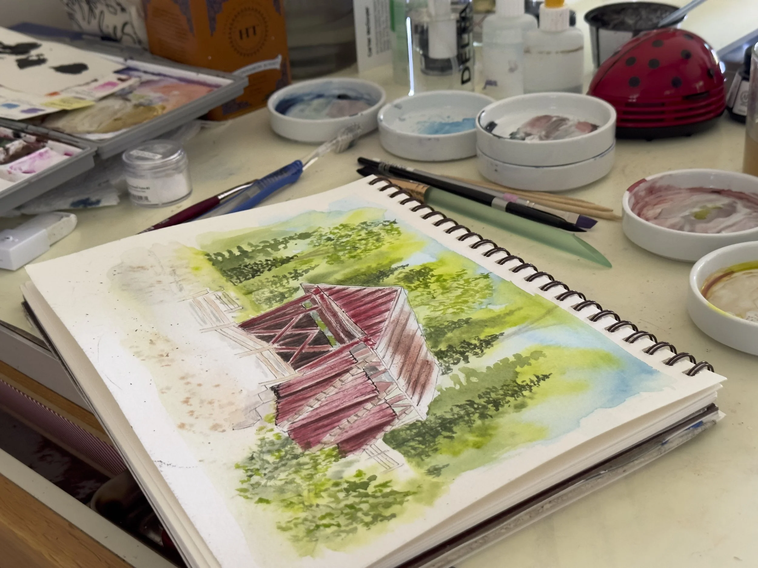 Let’s paint Campbell Covered Bridge. We will start with a reference photo, sketch a few guides and dive in!