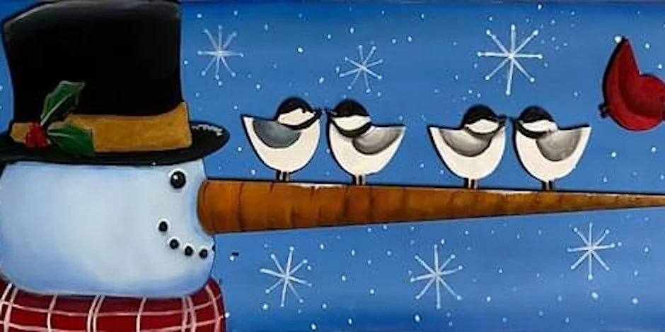 Paint this adorable snowman and his bird friends with Kym Easter at the Wild Hare Art Gallery in Travelers Rest, SC on Tuesday, January 19.