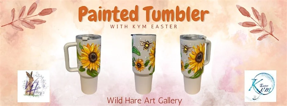 Hand paint sunflowers on a new tumbler with artist and Owner, Kym Easter at the Wild Hare Art Gallery in Travelers Rest.